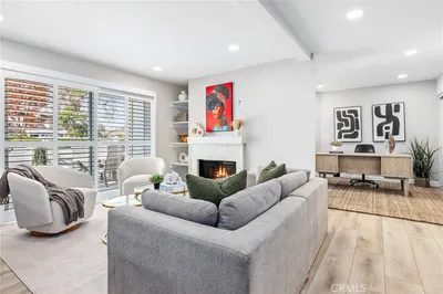Rare residence at Level One offering an ocean view! Level One is a striking urban community in a premier coastal setting, providing effortless access to everything from the sandy shores of Newport Beach to Lido Village and John Wayne Airport. Abundant windows flood the home with natural light, creating a bright, airy, and open interior throughout. The versatile first floor is commercially zoned—ideal for operating select businesses—or can easily serve as a play space for children. A roll-up garage door opens to welcome ocean breezes, making it perfect for hosting board meetings, while the commercial-grade bathroom is designed for convenience, whether accommodating guests or rinsing off your dog after a beach walk. Whitewashed, high-quality wood flooring spans the main living areas, enhancing the home’s open-concept design. The kitchen is lined with extensive cabinetry and showcases a stunning waterfall island, full backsplash, and GE Monogram stainless steel appliances. Both upper-level bathrooms have been thoughtfully upgraded, and the primary suite features a walk-in closet, dual vanities, and an oversized shower. The garage is finished with epoxy flooring and customized storage solutions to maximize functionality. The expansive rooftop deck offers sweeping ocean and mountain views—perfect for enjoying the Huntington Beach Airshow in the fall, Fourth of July fireworks, and the best of coastal living from your own private retreat. Additional amenities include security cameras, surround sound, and a robust security system.