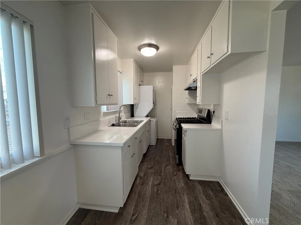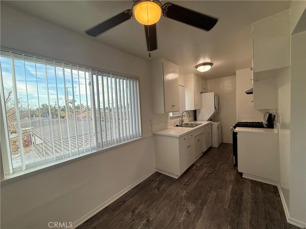 Eastside: Upper 2 Bedroom 1 Bath, Kitchen with Stove, Separate Dining with Ceiling Fan, Dinning Area with Ceiling Fan, Recessed Lighting, Vinyl Planking Throughout, Double Pane Windows, Vertical Blinds, Tiled Shower, Gray Shaker Vanity, Stackable Washer & Dryer, Assigned Parking Space, Near, Schools, Shops & Santa Ana Country Club.