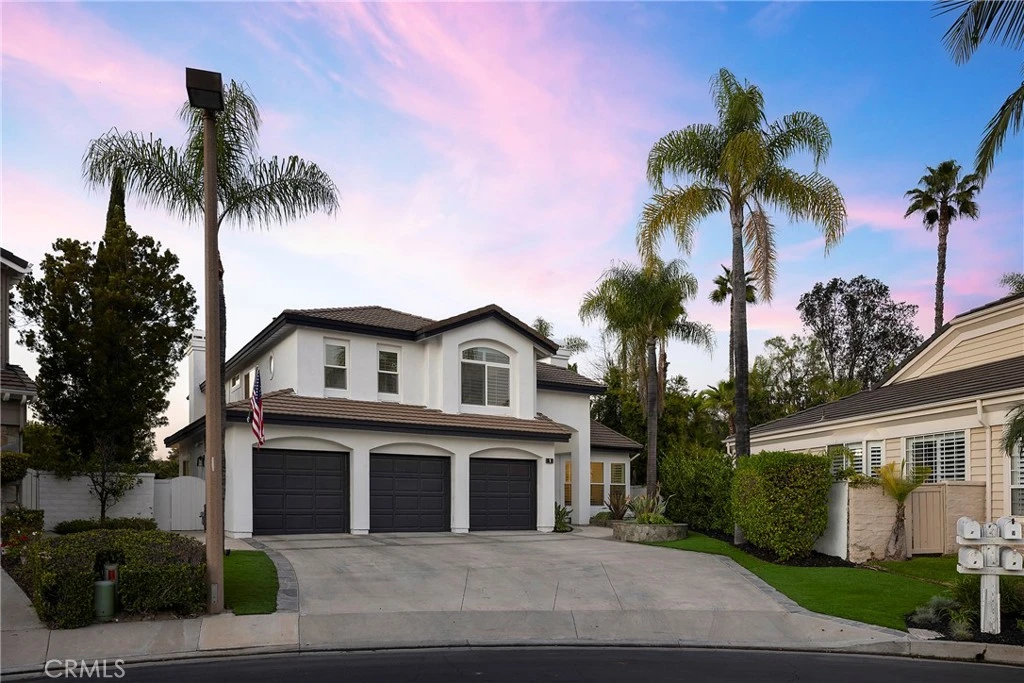 Set at the end of a quiet cul de sac within Coto de Caza’s sought after Hillsboro enclave, 1 Riviera is a thoughtfully reimagined residence where contemporary refinement meets enduring comfort. Spanning approximately 3,781 square feet, the home offers four light filled bedrooms including a main level en suite, an office or library, and an expansive bonus room with the flexibility to become a fifth bedroom or private retreat. The entry unfolds into an airy, open concept interior anchored by updated windows and a sweeping wrought iron wraparound staircase. At the heart of the home, a custom designed bar and wine experience features tailored cabinetry, quartz surfaces, dual wine refrigerators, and a beverage fridge, creating an effortless focal point for entertaining. Throughout the home, nearly 94,000 dollars in recent upgrades reflect a commitment to both design and function, from updated lighting and fireplace inserts to refined electrical improvements and custom storage solutions. The chef’s kitchen has been thoughtfully upgraded with a generous island, stainless steel appliances, two dishwashers, a freestanding range, and designer lighting that carries into the breakfast nook and dining area. Upstairs, the primary suite is a serene escape with an upgraded marble accented fireplace, sitting area, powered shades, and a spa inspired bath complete with a freestanding tub, a walk-in shower, marble finishes, and a custom organized closet. Secondary bedrooms feature upgraded LVP flooring, custom closet systems, and refined window treatments, while the Jack and Jill bath has been upgraded with a streamlined walk-in shower. Outdoors, the 10,500 square foot lot reveals a resort style backyard with an upgraded pool and spa, enhanced equipment, a built-in BBQ, refreshed landscaping with LED lighting and drip irrigation, and sweeping views toward the surrounding hills and the historic Lyon Estate. Additional improvements include epoxy garage floors with built-in organization, an upgraded HVAC and central vacuum system, and a full re pipe, completing this turnkey offering. With optional access to the Coto de Caza Golf and Racquet Club, nearby parks, and miles of scenic trails, 1 Riviera is a composed, move in ready expression of elevated living designed for both quiet moments and vibrant gatherings.