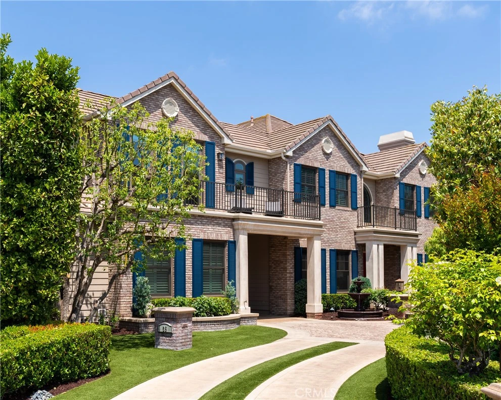 Welcome to 25 Flagstone, nestled behind double gates in the prestigious community of Coto de Caza. From the moment you approach the stately driveway, you are surrounded by mature landscaping & enhanced privacy. The elegant entryway opens to soaring ceilings & an abundance of natural light. Intricately detailed wainscoting accents the walls, with designer lighting & stunning chandeliers throughout. The formal living & dining rooms are detailed with millwork & large windows with views of the lush yard. A custom-built office has woodwork from floor to ceiling. The heart of the home is the expansive great room & gourmet kitchen. The oversized quartz island with ample seating is the centerpiece of this chef’s kitchen, featuring top-tier stainless steel appliances including a Dacor range, two Asko dishwashers & Sub-Zero refrigerator. The breakfast area commands views of the Saddleback Mountains & the resort-inspired backyard. The great room continues with a built-in bar & Sub-Zero wine refrigerator, a fireplace with marble surround & extensive cabinetry. A downstairs guest suite offers its own beautifully renovated bathroom & convenient access to the backyard pool and spa area. The expansive master suite offers a private sitting retreat, complete with soaring ceilings & breathtaking views. The spa-inspired master bathroom boasts two vanities, a coffee bar, an elegant freestanding tub, an oversized marble shower, integrated audio & an abundance of cabinet space. The master suite also includes a beautifully designed walk-in closet with a center island. Three additional secondary bedrooms, including a junior suite with its own private balcony, all feature remodeled en-suite bathrooms & walk-in closets. A large bonus room completes the upper level. The backyard is a private resort oasis with a refinished Pebble Tec pool & spa and an oversized bar with a built-in barbecue, refrigerator & side burner. To the side of the home is an elegant outdoor fireplace adjacent to a 4-hole putting green. Additional features include a porte-cochere leading towards two, 2-car garages bordering an oversized courtyard driveway with a built-in basketball hoop. The home has been maintained to the highest of standards, including all new windows and French doors installed by Renewal by Andersen, full home re-piping & whole-home water filtration system. No expense has been spared in crafting this extraordinary residence that perfectly blends timeless craftsmanship with modern luxury.