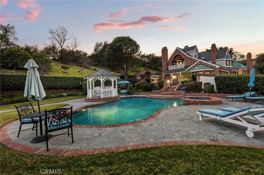 Welcome to a Premier Equestrian Estate spanning nearly Two Acres and showcasing nearly $2 Million in Upgrades in the gated community of Coto de Caza. A stunning brick exterior and private gated driveway leads to the English-inspired residence, where soaring ceilings and a grand crystal chandelier set the tone. The formal living room with a signature Marble Fireplace flows into a grand Great Room featuring Vaulted Wood Ceilings for grand-scale entertaining. At the heart of the home: a true Chef’s kitchen, a Culinary Masterpiece equipped with Three Sub-Zero refrigerators, professional Wolf Appliances, including a Built-In Grille, High-End Pot Filler, and multiple Warming Drawers. The oversized center Island showcases Hand-Carved Wood Details. Enter into the dedicated food preparation area and walk-in pantry. The main level is complete with a private Library, a Bedroom with an Ensuite Bath, and a Laundry Room with Sub-Zero refrigerator. The upper level is a sanctuary of wellness and leisure, highlighted by a Primary Suite with a private balcony that has a spiral staircase with direct access to the grounds, plus breathtaking mountain views from the retreat. The Primary Bathroom serves as a Personal Spa, spanning the long hallway, complete with a Soaking Tub, Glass Enclosed Shower Sauna, Massage Room, and a Boutique-Style Walk-In Closet. On the opposite wing, the estate transforms into an entertainer’s paradise with a Movie Theater, a private Gym with its own balcony and exterior staircase entrance, and a dedicated craft room. The outdoor grounds are equally impressive, featuring Horse Stables and a Corral alongside a pool oasis, spa, and a gazebo. The backyard living space is finished with a stainless steel Wolf BBQ and a brick fireplace, offering a serene backdrop for outdoor dining. Complete with a Four-Car Garage, this one-of-a-kind showpiece property represents the ultimate in California luxury living.
