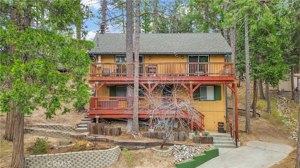 Charming mountain retreat located near Lake Gregory offering the perfect opportunity for full-time living, weekend escapes, or investment potential. This well-maintained home features a functional and inviting layout with two bedrooms conveniently located on the main level (of which one bedroom currently used as a gym) and two additional bedrooms upstairs, providing flexibility for guests, family living, or workspace options. The home showcases thoughtful updates, remodeled kitchen designed with a more open-concept floor plan that enhances flow and connection between living spaces—perfect for entertaining or enjoying everyday mountain living. Enhanced improvements through the years include updated flooring throughout, upgraded lighting fixtures, ceiling fans, refreshed interior finishes, and improved bathroom features with modern tile work, updated fixtures, and stylish glass shower enclosures. The property also features sliding glass doors and window coverings that enhance natural light and energy efficiency. Exterior upgrades include durable composite roofing and spacious redwood decks positioned to enjoy the surrounding mountain setting and outdoor lifestyle. Additional enhancements include upgraded plumbing fixtures, low-flow toilets, and freeze-resistant outdoor spigots for seasonal durability. Conveniently located near local recreation, dining, and year-round outdoor activities, this property offers a wonderful opportunity to enjoy mountain living at its best.