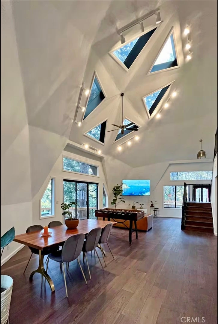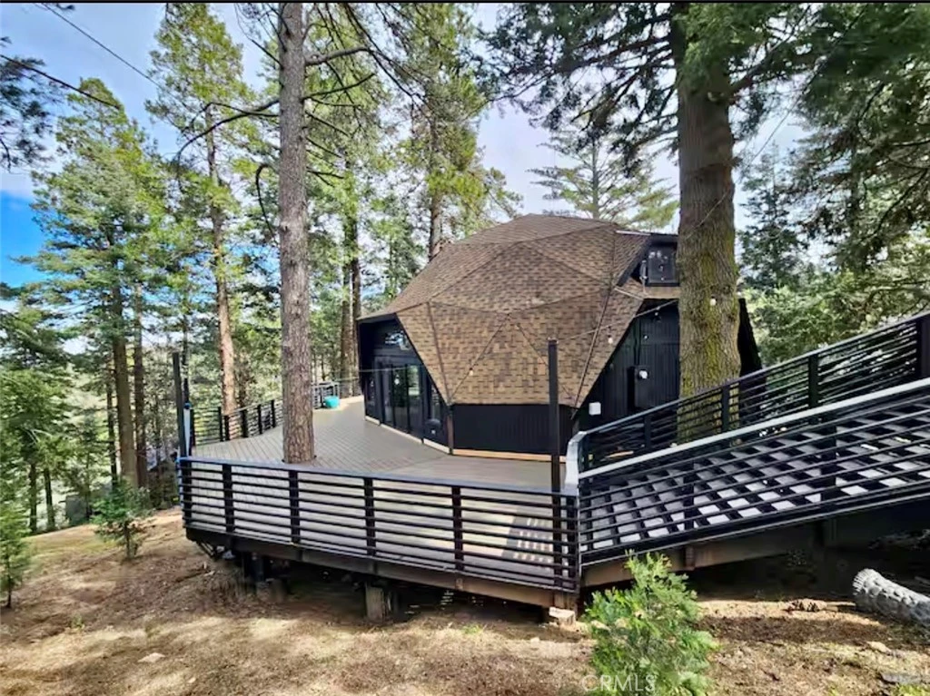 Welcome to a truly unique mountain retreat unlike anything else in Crestline. This stunning architectural geodesic dome home offers approximately 2,900 square feet, 4 bedrooms, and 3 bathrooms, set on a spacious 0.78-acre lot surrounded by trees and natural beauty. What makes this home extraordinary is its iconic geodesic dome design, creating soaring ceilings, incredible natural light, and an open, airy living environment that feels both dramatic and inviting. Multiple skylights flood the home with natural light, while the open-concept living spaces provide an ideal setting for relaxing, entertaining, or enjoying peaceful mountain living. The property has been thoughtfully modernized with numerous upgrades, blending contemporary comfort with the charm of its distinctive architecture. The highlight of the exterior is the brand-new $250,000 composite decking that surrounds the home, creating a breathtaking outdoor living experience. This rare geodesic dome home is a true statement property—perfect as a full-time residence, luxury mountain getaway, or unforgettable short-term rental opportunity. *Updated photos of the entire property coming soon*