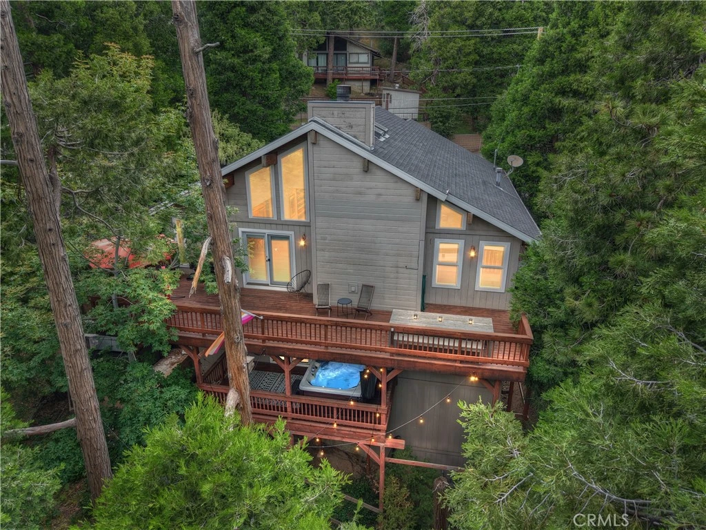 If the Mountains are calling...here's your well-appointed Mountain Chalet in the coveted San Moritz area of Crestline. Just around the corner (walking distance!) from beautiful Lake Gregory with its Water Park, Swim Beach, Lake Trail, Skate Park, Fishing, Boating, Kayaking, Paddle Boarding, and Dog Park. Easy access on a Plowed and Maintained road with Level Entry and an Attached 2 Car Garage for Easy Mountain Living. Open Floor Plan Living/Dining with Soaring High Ceilings and centerpiece Fireplace for those Cozy Winter Evenings. A Large Deck overlooking the pines to grill, gather and lounge. A Master Suite with its own Private Deck, complete with Jacuzzi. Wide Staircase and Hallways give a sense of comfortable expansiveness. Plenty of room for your Family or Guests with 3 bedrooms and an additional room - currently being used as an office - could be a 4th bedroom. Not to mention your own personal Mountain Spa Retreat including a SwimSpa and outdoor Infrared Sauna. Oh..and there's a Natural Water Spring surrounded by Blackberry bushes in the yard! This is a beautiful, newer Home for the area in a GREAT location. Escape from the Flatlands this Summer to enjoy all the magical San Bernardino Mountains have to offer.