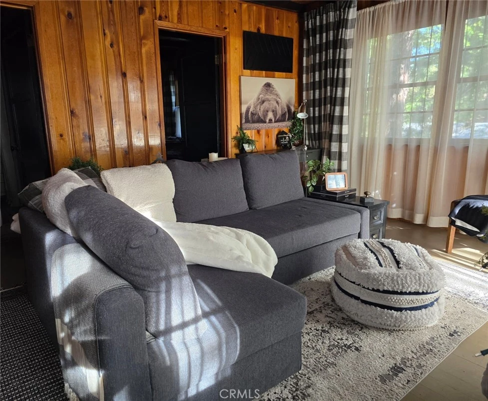 This fully furnished single-level, 1-bedroom retreat is filled with warm wood finishes that create an authentic, cozy alpine feel from the moment you step inside. The spacious living room features beautiful beamed ceilings and a sliding glass door that opens onto the front deck. Perfect for sipping your morning coffee or unwinding in the crisp mountain air. An inviting eat-in kitchen showcases classic knotty pine cabinetry paired with recently changed countertops. The bathroom has been tastefully updated while still honoring the home’s vintage style, Full of personality and practical features, this charming cabin is an ideal place to relax and recharge in the mountains.