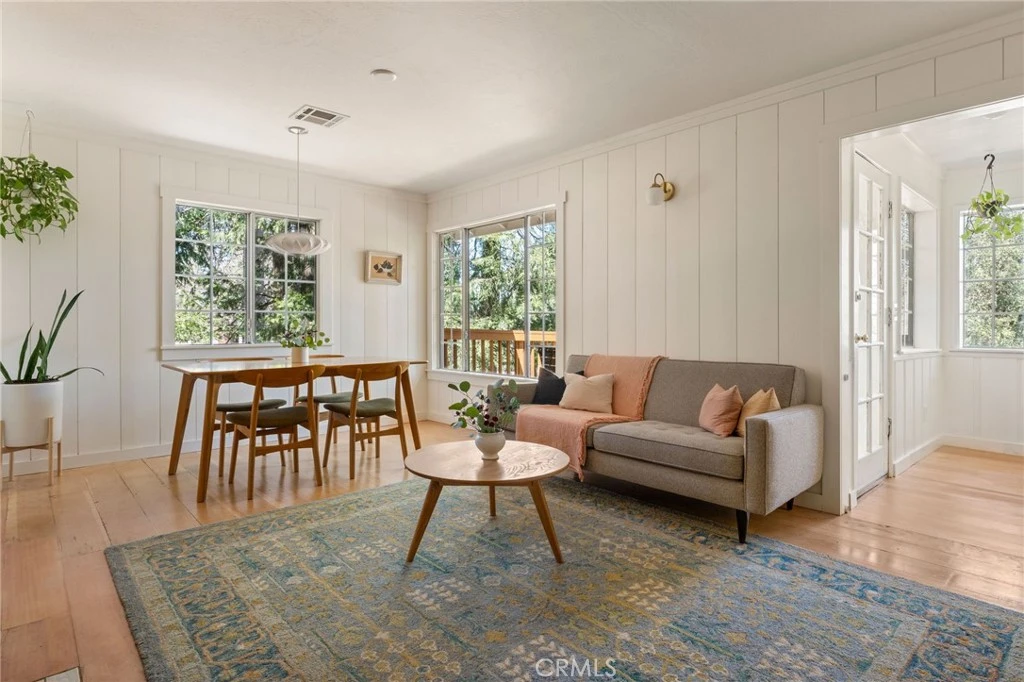 This home has been thoughtfully updated with an inviting Scandinavian aesthetic and organic mountain touches. Located at the end of a cul-de-sac, this property offers a quiet, tranquil respite from the hustle and bustle of daily life. Beautiful masonry along an easily accessible driveway offers ample parking for family and guests. Enter on the upper level to find a light & bright, fully updated kitchen with custom cabinetry and butcher block countertops that opens to the dining area and living room, with large windows that let in the light. A beautiful Hearthstone wood burning stove serves as a focal point in the living room. Down the hallway are two bedrooms, one of which is the primary suite with en-suite bathroom. Across the hallway is the 2nd bathroom. Also on this level is a built-in desk area, stackable laundry closet and access to the newly constructed front deck. Downstairs is the 3rd bedroom and direct entry into the 1 car garage. The backyard features a spacious back deck and large gradual hillside with endless potential. The property has undergone a full renovation in recent years - upgrades include: new electrical, new wall insulation using rockwool, custom tongue and groove wood paneling, interior walls have been soundproofed with rockwool, all new kitchen & bathrooms, new water heater, new front & back redwood decks and more! This charming cabin will steal your heart!