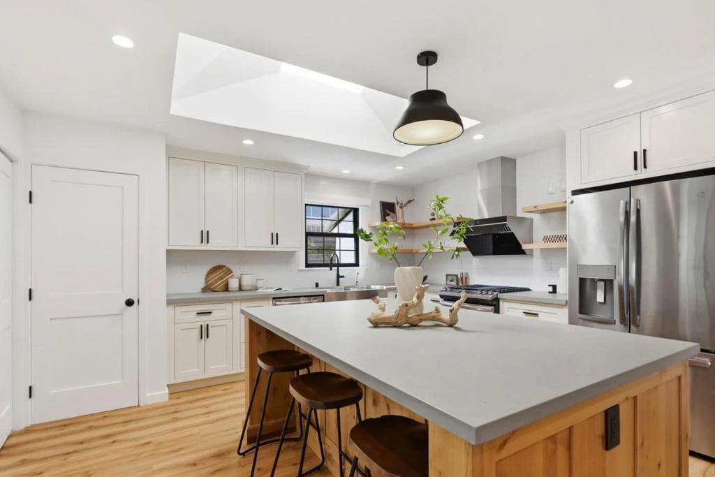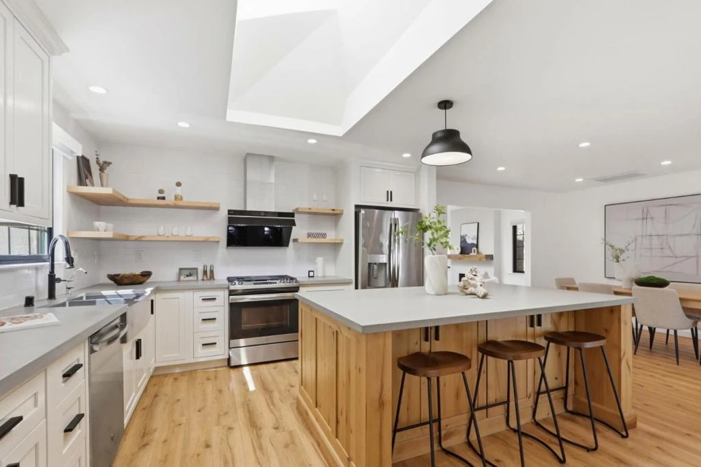 Nestled on a tranquil street in Cupertinos premier Monta Vista neighborhood, this masterfully reimagined single-story residence offers a perfect blend of modern luxury and serene comfort. Having undergone a comprehensive top-to-bottom transformation, the home welcomes you with an airy, open-concept floor plan illuminated by designer recessed lighting and anchored by premium wide-plank flooring. The gourmet chefs kitchen is a centerpiece of sophisticated design, featuring sleek custom cabinetry, high-end quartz countertops, and professional-grade stainless steel appliances. Both bathrooms have been meticulously remodeled with spa-like aesthetics, complemented throughout the home by custom Hunter Douglas window treatments and energy-efficient dual-pane windows. Outside, the professionally landscaped grounds create a private oasis, featuring a spacious patio for entertaining and contemporary horizontal redwood fencing. This turn-key gem is just steps away from some of the nation's most acclaimed schools, while offering unparalleled proximity to Apples Infinite Loop and Spaceship campuses, major tech hubs, and convenient freeway access.