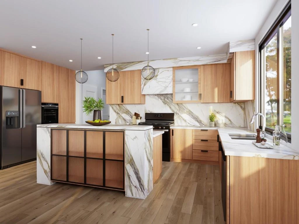 A brand-new, PRE-CONSTRUCTION home in prime Cupertino location near Monta Vista High & Apple campus. With high vaulted ceilings, a striking pivot-style front door, & covered entry porch. The living room has floor-to-ceiling picture window, while the family room includes a high vaulted ceiling, wood ceiling panels, skylights, recessed lighting, black-framed windows, a custom slat-wood accent wall, a floating cabinet, & expansive glass doors. The kitchen features cabinetry, full-height backsplash, stainless steel appliances: French-door refrigerator, double oven, range, hood, & dishwasher along with a waterfall-edged island, sliding window, breakfast bar, & dining area. The primary suite offers a large picture window & walk-in closet. The primary bathroom features decorative accent tile, shower accent wall, freestanding tub, glass shower enclosure, backlit mirror, double-sink floating vanity, & water closet. Additional amenities include a dedicated office space, bedrooms with built-in closets, & Jack-and-Jill bathroom with a dual-sink floating vanity & frameless glass shower enclosure. The hallway bath offers a vanity plus tub & shower. Hallway closets, laundry area, spacious deck, & landscaped front & backyard.