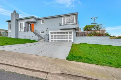 Beautiful midcentury home in the heart of Daly City has been remodeled to accommodate the best of modern living! Thoughtfully updated with refinished original wood floors and new flooring, refreshed bathrooms, new heating, and a new kitchen with modern quartz countertops and high end appliances. The arched doorway invites you into the main entry living room, with original wood floors and a regal fireplace; combining the best of updated features with old world architecture. Serene colors create a modern, peaceful environment. Entertain in the upstairs open floor plan that has beautiful site lines from the kitchen/dining space and into the oversized family room. Two bedrooms and a full bath are located off the main living spaces. A large addition, downstairs, features a primary bedroom/full bath, with easy access to the garage and outdoors. Sit beneath the canopy of trees in this oversized backyard and let your imagination flourish; this outdoor space can truly be your blank slate.
