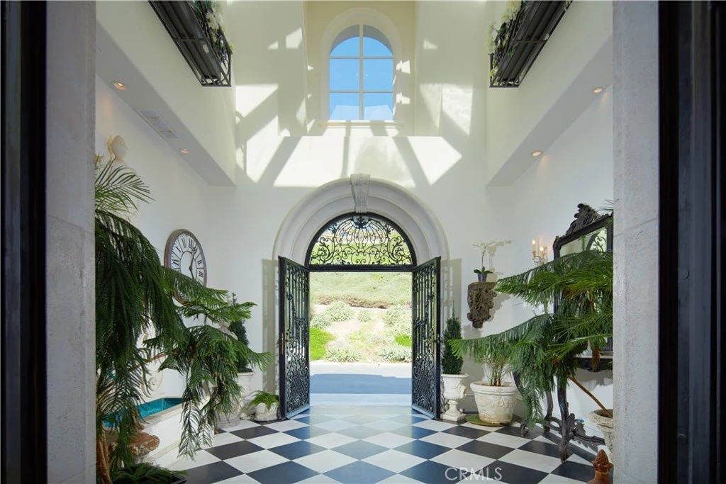 This European-inspired oceanfront home by interior designer Sue McKeehan and Architect Marshall Ininns is in the 24-hour guard gated beachfront community of Niguel Shores in Monarch Beach. Infused with antique details and the finest finish materials, the old world feeling is evident everywhere in the home, starting in the entry courtyard with its black and white marble floor, 12-foot high wrought iron and glass doors, and kitchen with an antique sway-backed French basin inserted into an old French chopping block. The endless panoramic views mesmerize from all three levels of the house; on the main floor, the sheer wall of glass allows the sun and water to filter into the kitchen and living room areas that are adjacent to it, on the upper level the oceanfront primary suite feels like you are on the bridge of an ocean liner, and from the lowest floor, the family room looks out onto the water and from this level one can walk out to the outdoor living space with its fireplace pool and steps to the private beach. The home's main level features untreated marble, a large great room with an antique fireplace, and the kitchen, which has a sweeping view and is perfect for everyday living and hosting on a grand scale. The home's upper level features three family bedrooms with en-suite baths, a study, and a dramatic primary suite with a retreat, fireplace, and elegant marble bath. The lower level of the home is all about entertaining with a theater, gym, wine room, guest suite, and playroom with a bar, built-ins, and a huge entertaining room. Niguel Shores is an active lifestyle community with private beach access, a clubhouse, a swimming pool, tennis courts, pickleball courts, playground, and numerous athletic amenities. All the fun of the beach is outside your door, swimming, surfing, paddle boarding, volleyball, and just an easy walk to the world famous Ritz Carlton Hotel.