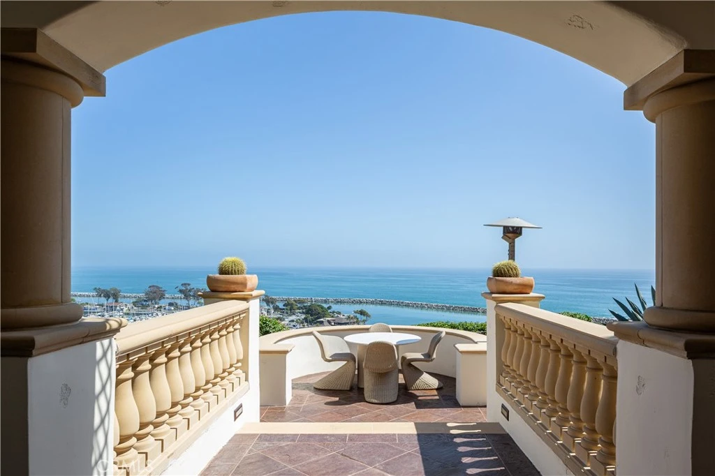 Welcome to Casa Santa Clara, an exquisite Spanish Colonial Revival estate perched atop the bluff overlooking Dana Point Harbor. Inspired by the iconic works of Wallace Neff, this custom home embodies the timeless elegance of early California architecture, seamlessly blending Old World craftsmanship with modern luxury. From the moment you step inside, sweeping panoramic ocean and harbor views captivate the senses, while the meticulous design details-hand-painted tiles, intricate wrought-iron accents, and exposed wood beams--reflect the unmistakable influence of Neff's refined aesthetic. The main house offers three beautifully appointed bedrooms, while the guest house features two additional bedrooms, creating a private retreat for visitors. These two parts of the property are connected by a stunning courtyard, where a vibrant Marlo Bartels fountain serves as the crown jewel, celebrating the rich tradition of Spanish tile artistry. Throughout the home, these intricate tiles emerge unexpectedly, adding warmth and character to the crisp, eggshell stucco exterior (originally textured by Sicilian craftsmen) all homages to Neff's architectural legacy. Designed for effortless coastal living, Casa Santa Clara spans three levels, all accessible by a private elevator. The gourmet kitchen, adorned with custom cabinetry and premium appliances, opens to an inviting dining and living area, perfect for entertaining. The primary suite is a sanctuary of its own, offering a spa-like master bathroom and a private balcony to take in the breathtaking ocean vistas. On the third level, a game room/study provides an intimate retreat with unmatched views. The guest house features a mirrored room to host a gym and a home theater in the living quarters equipped with an audio surround system. Step outside onto the expansive terraces and lushly landscaped patios, where ocean breezes and golden sunsets set the stage for al fresco dining and relaxation. With an unrivaled location just moments from Dana Point's world-class marina, pristine beaches, and the charming Lantern District, this estate offers a rare opportunity to own a piece of California's most coveted coastline. As the Dana Point Harbor Revitalization project unfolds, the future shines even brighter. Experience the pinnacle of luxury living in this Wallace Neff-inspired masterpiece schedule your private tour today.