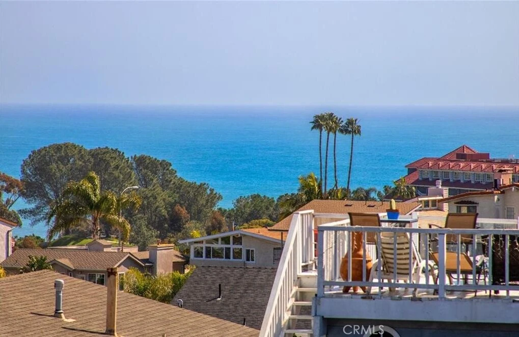 OCEAN VIEWS from your living room! Three bedroom townhome style unit attached on only one side. Gourmet granite kitchen with custom cabinets, stainless steel appliances, cozy living room with fireplace and ocean views, breakfast bar, upgraded lighting & plumbing fixtures, luxury remodeled travertine bathrooms. Master suite on lower level with complete privacy from other 2 bedrooms, which are on the upper level. Master bedroom has private balcony. Two secondary bedrooms have sliding doors to let in lots of light, air, and provide access to private backyard. Laundry is in hallway on upper level. 2 car garage with 2 car driveway, so total parking spots are FOUR. Garage does not have direct access. You go up a flight of stairs to the front door, then the home is a split level. Private backyard and balcony great for sunbathing & entertaining. Walking distance to beaches, Dana Point Harbor, shops and restaurants too!