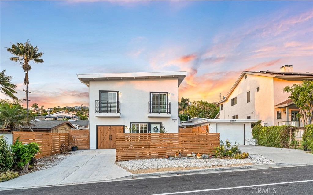 In the heart of Dana Point in Capistrano Beach, is the home and investment that you have been waiting for. The moment you pull up, you will notice the beautiful curb appeal of the two separate homes. Unit B was newly built. With 2 bed rooms and two baths, with a separate casita and a full bathroom in the back yard is a perfect place to host. The moment you walk in, you will notice the modern and new design of this unit. With large double paned windows, recessed lighting, a ceiling fan and an abundance of natural lighting throughout. The Living Room is large enough for a small seating area. The Kitchen features quartz countertops, stainless steel appliances, and newer cabinets. The downstairs bathroom has a walk-in shower with beautiful designer tile. There is a custom Family Room that can be converted back to the 1 car garage. The upstairs bedrooms are very large with Ocean Views , ceiling fans, and each have a private balcony with ocean views. The upper bathroom is a must see with designer tile from floor to ceiling and quartz countertops. The Back yard is very large with custom lighting, and a large garden. The detached Casita is perfect for guest or a private office with another full bathroom. Unit A is a newly remodeled single level home with a large Living Room with a cozy gas fireplace. With double paned windows and upper sky lights, the lighting is perfect in this home. The Kitchen has newer stainless steel appliances, granite countertops, and an abundance of custom cabinet space. The Primary Bedroom is large with a full bathroom with a walk-in shower. The two guest bedrooms share another beautiful bathroom with a walk-in shower. The backyard has a deck for shade, multiple seating areas, and custom lighting. There is a one car garage with a separate area for the washer and dryer. This home is truly a must see. A one of a kind. Close to the beach, Dana Point Harbor, restaurants, shops, schools, parks, trails, and so much more. Welcome Home.