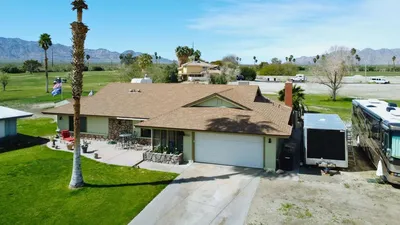 AFFORDABLE LIKE NEW! GOLF COURSE PROPERTY! Behind 4th hole tee. 9/18 Public Golf Course with 2 lakes. Single story home in Lake Tamarisk, Desert Center Community. New roof w/ 5 yr warranty. New double pane windows whole house. New Cabinets and Granite in kitchen. New paint whole house interior. Large family/entertainment room. Bonus room could be 4th bedroom. Great Air Conditioning /additional Evaporative cooler and ceiling fans throughout. New Porcelain tile and carpet flooring whole house. Like new range/oven, two full size refrigerators washer and dryer all electric INCLUDED! Covered patio/Fenced and gated back yard. Solar sprinkler system. Fire dept approximately 4 blocks away with library and public cooling center. Located right off interstate 10. Easy commute from Indio or Blythe. All Public utilities under ground. NO HOA. Perfect for Primary residence ,or 2nd home. Potential Rent 2500 mo. estimate .May Qualify for USDA mortgage.