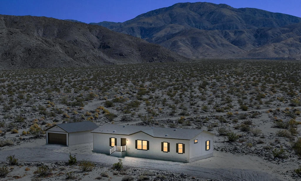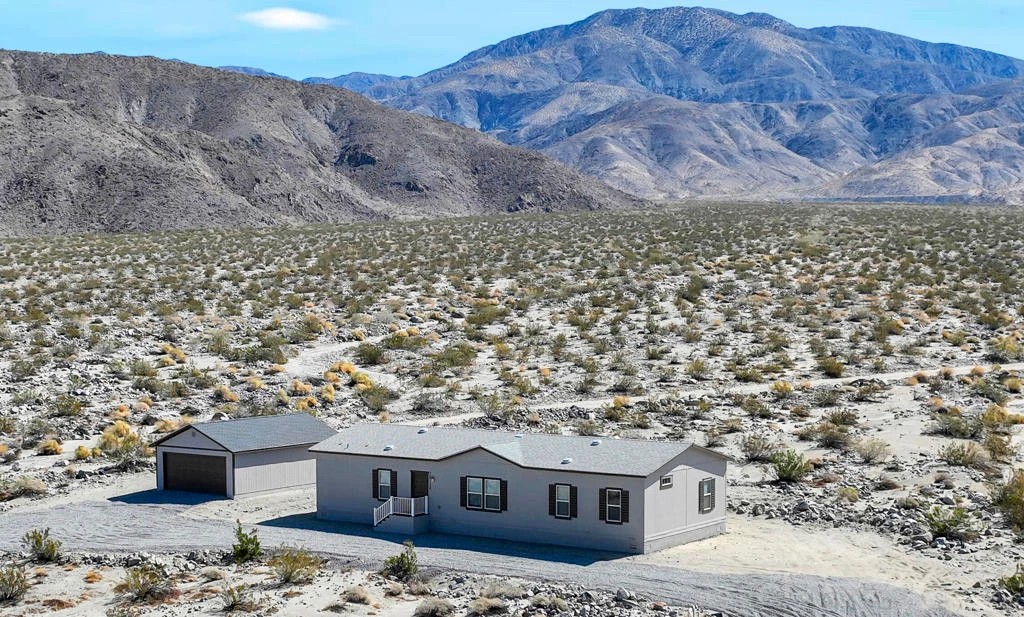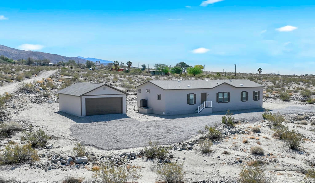 FHA approved financing! New home on just under 5 acres with an oversized (20 X 30) two car garage and workshop. This new home is on a permanent foundation and includes kitchen appliances. This area is part of the IID (Imperial Irrigation District - electric company) which will save you money on your electric bills. This unit is 4 bedrooms, 2 baths with a den and 1800 square feet of living space. The views from this home are nothing less than spectacular as you look out to see Mount San Jacinto, and San Gorgonio , along with the little San Bernardino mountains along the side and east. This home gives you the feel of wide open spaces as you enjoy peace and quiet all around you. EZ to show!