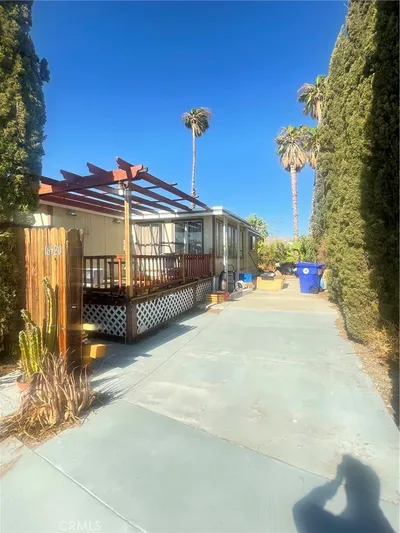 YOU OWN THE LAND! NO HOA! LARGE LOT FOR YOUR HEAVY EQUIPMENT! Do not miss the opportunity to own this 3 bedroom 2 bath manufactured home on a permanent foundation with a recorded for 433 giving you access to most loan types. Located within Riverside County zoning on the edge of North Palm Springs giving you easy access to the I-10 Freeway and the whole Coachella Valley. This home was updated last year with new floors, new kitchen quartz countertops, new interior and exterior paint, new light fixtures, new water heater and new Central AC. Also, brand new high-grade roof was recently replaced this year. With NO HOA, this property is located on its own spacious lot, completely fenced, ideal for a buyer with equipment and need for storage. Perfect property for a first time home buyer or investor. Short term rentals (AirBnB) are allowed in this area. Quiet neighborhood, Close to shopping centers, public transportation, spas, schools, and parks. Only 3.5 miles off the I-10 Freeway, a 15 minute drive to Downtown Palm Springs and 30 minutes to Joshua Tree National Park. Call now to make an appointment to view this home.