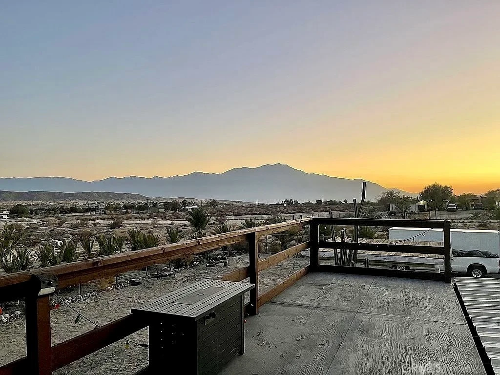Escape the city and enjoy serene, private living on this gorgeous 2.5-acre property featuring over 65 Medjool Date trees with room to plant many more. Zoned for agriculture and equestrian use, this secluded retreat offers spectacular mountain and desert vistas, perfect for appreciating stunning sunsets, sunrises, and starry nights in peace. The charming, furnished 4-bedroom, 1-bath Sky Valley home boasts a European kitchen with white and gray granite countertops, Old World cabinetry, and spacious dining area. The bathroom features a high vanity with a glass bowl sink and an open tile shower. The living room is warm and inviting, with French doors and a real wood-burning stove, complemented by a spacious 6’ x 40’ screened-in porch for outdoor relaxation. A fourth bedroom on the west side of the home provides additional flexibility. Outside, the property includes a trailer for a project ideal for guests, a caretaker, or in-law quarters as well as four sheds for storage. For entertainment and gatherings there is 20’x40’ concrete slab on the lower part of the property offers versatile space for additional projects or structures. The home is partially gated for privacy and features a covered carport, making it perfect for families, artists, musicians, or contractors seeking a peaceful rural lifestyle. This property offers a unique blend of natural beauty, functional living spaces, and agricultural potential, or just a private getaway for those seeking a weekend home