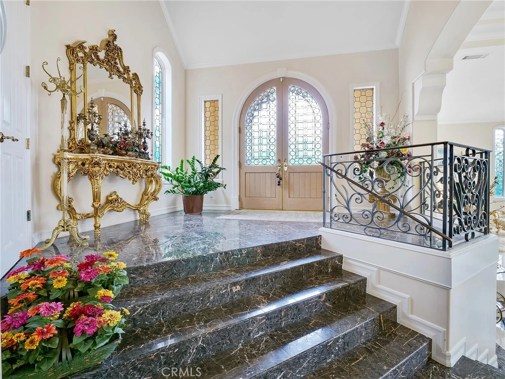 Nestled in the prestigious enclave of The Country Estates, this stunning custom estate embodies refined luxury and timeless elegance. Sprawling over 6,726 square feet of meticulously designed living space, this two-story masterpiece offers six spacious bedrooms and seven exquisite bathrooms, ensuring ample room for both lavish entertaining and intimate family living. Upon entering the grand formal entryway, visitors are greeted by soaring ceilings, striking marble and hardwood floors, and an ambiance of stunning sophistication. The home's layout is thoughtfully arranged with an oversized living room, a gracious formal living area, and a welcoming family room that radiates warmth and charm. Every detail has been carefully curated and updated, from the entirely re-piped systems to the modernized, luxurious bathrooms. The gourmet kitchen is a chef's dream, equipped with top-of-the-line built-in appliances, a generous walk-in pantry, and elegant finishes that promise both functionality and style. Each spacious bedroom suite, including a lush primary retreat, provides a serene sanctuary with refined touches that enhance the sense of calm and comfort. The primary bedroom is spacious, completed with a fireplace, huge walk-in closet, covered viewing deck, marbled bathroom with large vanity, dual sinks, walk-in shower, separate soaking tub, private commode, and magnificent views. Beyond the interior, the property truly shines. Step outside into a breathtaking landscape designed for entertaining and relaxation. The expansive grounds feature a private putting green, a sparkling pool and spa, and a charming gazebo, all set against a backdrop of mesmerizing panoramic city lights and majestic mountain views. The park-like setting offers a peaceful escape, making it the perfect venue for both lively gatherings and quiet evenings under the stars. This beautiful and functional custom estate is more than a simple home, it is a statement of luxury, comfort, and impeccable taste in one of the most coveted communities.