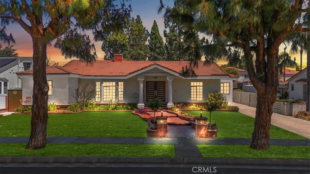 Amazing orange estates home, completely remodeled in 2008 with an additional 745 SF (Included in SF) built in 2024. Nice inviting covered front porch leads to a custom double door entry. The entry way shows an open floor plan with warm solid wood flooring in the living room that has a bay window, fireplace, and vertical wall cutouts for abundant lighting. There is a step-down family room, with low-built bookcases, a high 9’ ceiling and large windows with sliders providing abundant lighting and a nice view of the yard and patio area. There is a central dining area that looks out to the back yard and ADU. Amazing chefs’ kitchen with island and premium appliances, quartz “Ceasarstone” counters, slide out shelves and custom cabinetry. It comes with 3 additional matching refrigerators for large get togethers. The home has cordless window blinds and roll shades with double paned windows. Stunning sliding glass doors on hallway closet. This home comes with a master suite and a front bedroom for guests. The rear ADU is amazing with a large glass wall of panoramic sliding doors, open floor plan and a small upstairs loft that is not included in the SF. Home features “Kohelr/Groher and Toto fixtures. Backyard is beautifully landscaped with an existing percolating drain under the rear yard. This is a must see home to appreciate all the features and thoughtful design.