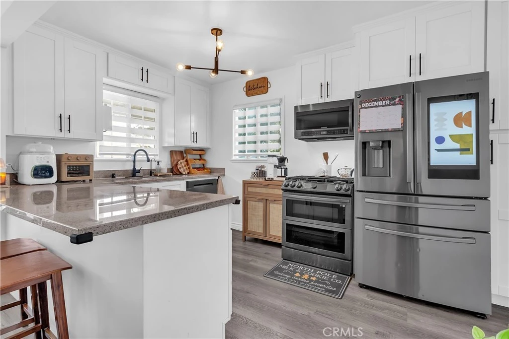 Welcome to this beautifully updated 3-bedroom, 2-bathroom home tucked away on a quiet cul-de-sac in one of Downey’s most desirable neighborhoods. The inviting living room is filled with natural light and flows seamlessly into an open-concept layout, creating a warm and welcoming atmosphere. The modern kitchen features bright white cabinetry, ample granite counter space, and bar seating ideal for casual dining and entertaining. The spacious primary suite offers dual closets and a private en-suite bathroom. Step outside to a backyard designed for relaxation and entertaining, complete with a patio, built-in BBQ grill island, and gazebo. Additional highlights include a large driveway with ample parking, an attached two-car garage with ADU potential, and gated RV parking. Recent upgrades include a new 2025 central air conditioning system with new ducting, double-pane windows, upgraded window blinds, new rain gutters, Govee exterior lighting, interior washer and dryer, and solar panels for long-term energy efficiency. Striking curb appeal in a prime location near shopping, major freeways, and top-rated schools. Schedule your tour today! Back on the market no fault to sellers. Buyer's agent could not perform.
