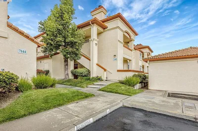 Private and serene, this Mediterranean-style beauty blends comfort with modern flair. Enjoy stunning skyline sunset views from your spacious outdoor patio—perfect for relaxing or entertaining. This desirable lower-level, corner end-unit features wood floors throughout, an open living area, and a beautifully updated kitchen with granite countertops, new cabinetry, and stainless steel appliances. The primary suite boasts a generous walk-in closet, and the convenience of in-unit laundry adds to the ease of everyday living. Includes a dedicated covered end parking stall directly in front of the unit, plus ample guest parking. Prime location within the complex and close proximity to BART, 580/680 freeways, shopping, dining, and local activities. HOA amenities include a clubhouse, BBQ area, volleyball court, and two sparkling swimming pools. A true 10+—don’t miss this opportunity to live in a vibrant and welcoming community! Open house 1 to 4 pm SAT & SUN