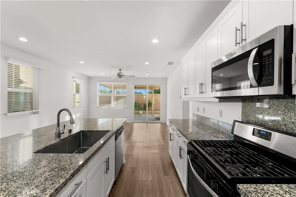Situated on a quiet cul-de-sac in the heart of Eastvale, this well-designed two-story residence offers approximately 2,895 square feet of living space with 4 bedrooms and 3 bathrooms. A desirable main-level bedroom and full bath provide flexibility for guests or multigenerational living. The thoughtfully planned interior features an open layout that connects the main living areas, creating a comfortable and functional flow for everyday living. The kitchen serves as a central gathering space, featuring an oversized island and ample cabinetry, and opens to the adjacent family room—ideal for entertaining or casual relaxation. Upstairs, a spacious loft provides versatile use options such as a home office, media area, or playroom. The primary suite offers generous proportions, dual vanities, and a walk-in closet, while the additional bedrooms provide comfortable accommodations. The backyard includes a covered patio, offering a low-maintenance outdoor retreat. Additional highlights include an upstairs laundry room and direct access to the attached garage. Located within the Corona–Norco Unified School District, this home enjoys convenient access to nearby parks, shopping centers, dining, and major freeways including the 15, 60, and 91, making commuting throughout the Inland Empire and beyond both efficient and convenient.