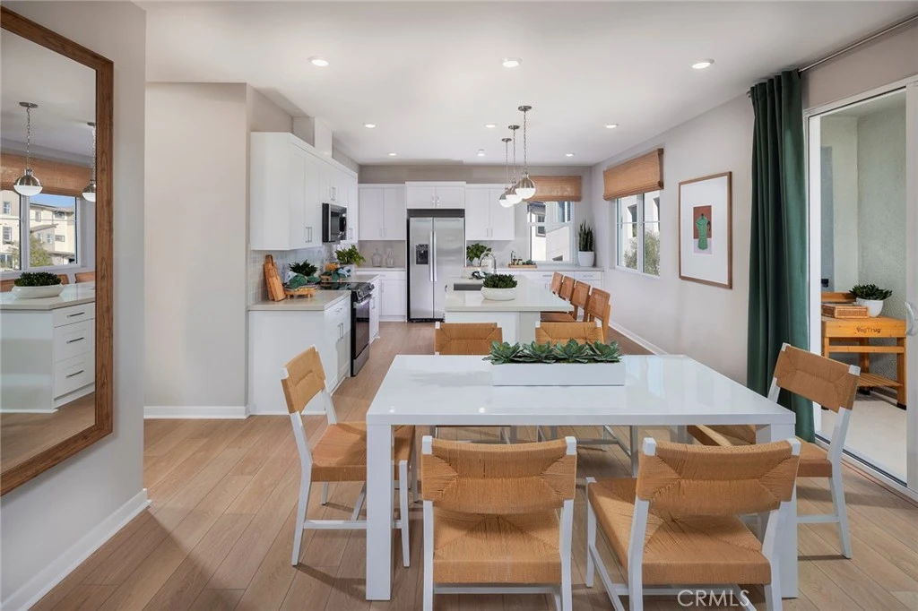 MOVE IN READY, new construction at Eastvale Square by Risewell Homes. Corner location, upgraded, turnkey detached home features Great Room/Kitchen/Dining at the second floor, complemented by an outdoor deck. Once upstairs find spacious Primary Suite opposite secondary Beds/Bath and Laundry closet w/ included stacked washer/dryer. Fenced front courtyard entry leads to a coveted main floor Bed w/ ensuite Bath, interior upgrades and features aplenty, with an elevated design theme featuring sleek cabinetry, LVP/carpet/tile flooring, Quartz counters. Home also short distance to new community pool/Clubhouse (The Junction). Located in the heart of bustling Eastvale and walkable to a variety of shopping/dining/entertainment options, with proximity to 15/91/60/71 commuter corridors combine for a desirable lifestyle. Generous builder concessions available.