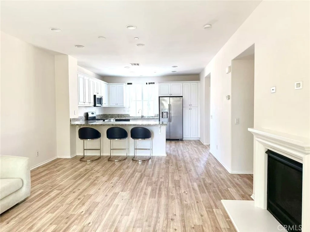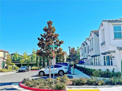Beautiful 2 Bedroom 2.5 bathrooms condo with two car garage located in a gated community Serafina. One bedroom with full bathroom downstairs. Open floor plan in the second floor with nice lights. Relax in your primary suite with a loft & walk in closet included. Take advantage of the extended counter space in the primary bathroom complete with double sinks and under sink storage. Community has resort- style amenities including pool,SPA,BBQ, playgroud, basketball court. HOA fees include trash & water. Tp rated schools with Eleanore Roosvelt High School. Conveniently to freeway 15 & 60 , few mins to shopping center with Raphs, Costco & 99 Ranch. Must See!.