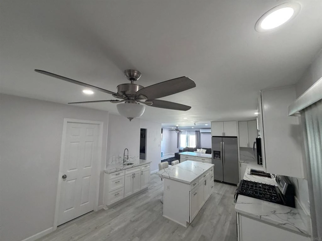 The Meadows is a Land-owned 55+ Park with no space rent, this turnkey and extensively upgraded 2 bed, 2 bath home offers approximately 1,500 sq ft of stylish living space with nearly every improvement completed within the last year. The HOA is $319/month and covers water, trash, sewer, common area maintenance, a heated pool, and basic Cox cable. The expanded primary suite and enclosed sunroom add flexibility and function, with the sunroom fully integrated into the home and ideal for an office, den, or additional living area. Interior upgrades include quartz countertops throughout, vinyl flooring, recessed lighting, dual-pane windows, newer stainless steel appliances, a separate laundry room, and three mini-split systems for efficient heating and cooling. The primary bath features dual vanities and a stunning walk-in designer shower. Exterior improvements include fiber cement siding, widened driveway and rear patio concrete, artificial turf, and a newly built shed. Five mounted TVs are included, including an 86-inch TV. The roof was recently updated and includes a 10-year warranty.