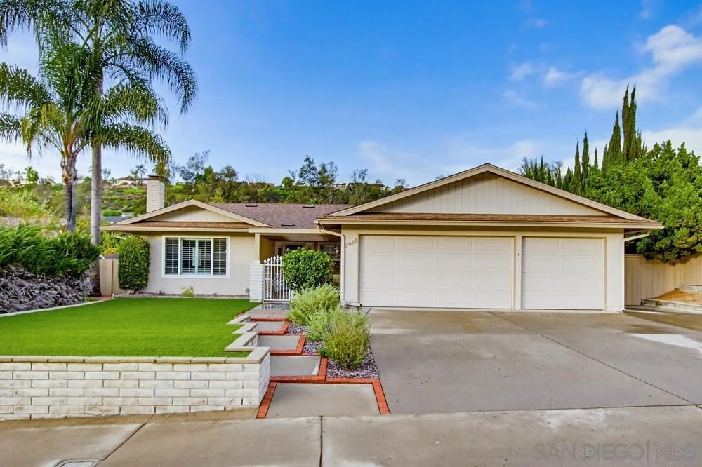 It's not just a home-it's Fletcher Hills Highlands finest! Highly sought-after 1 level, 4 bedroom home on one of the areas most coveted streets! Fall in love the minute you arrive! Gorgeous turf front yard with tropical flowering landscape! Private courtyard entry leads you to the stunning beveled glass front door! Open to formal entry and feel all the amazing flowing natural light! To your left, the large living room with oversized front window allowing for more light + cozy fireplace ideal for cooler evenings! Living room flows to dining area with built-in china cabinet and plenty of room for family dinners or gatherings! Updated kitchen with custom cabinetry, beautiful counters, window with views to backyard, breakfast bar seating and breakfast area for your more casual meals! Big family room with slider to the backyard oasis! Large primary suite with en-suite updated bath! Great sized additional bedrooms-1 could be a perfect office! Lush backyard with covered patio, plenty of green grass for kid play, pets, or entertaining, fruit trees, and loads of privacy! Details not to miss- 3 car garage, central HVAC, new roof with composite cool shingles (2024), plantation shutters on dual-paned windows, + walking/hiking trails close by! Make this YOUR home before someone else does! Welcome Home!