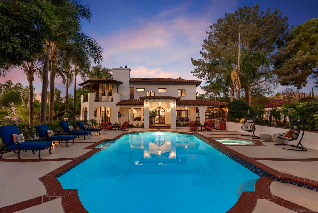 This Granite Hills authentic Spanish Hacienda is a work of art. The home has been completely remodeled from top to bottom with custom iron doors, hand painted Spanish tile throughout, walnut cabinets, top of the line appliances, new HVAC system, new stucco, outdoor kitchen, wraparound decks, and a wine closet. With RV parking, an attached 2 car garage + detached 4 car garage, and standalone workshop, there's plenty of room for a multitude of cars, boats, and desert toys. The home also includes a detached two-bedroom new guest house with its own parking and entrance, perfect for rental income or multi-generational living. This fully-fenced property is truly an oasis. With ample grounds to entertain and relax, this home is not to be missed!
