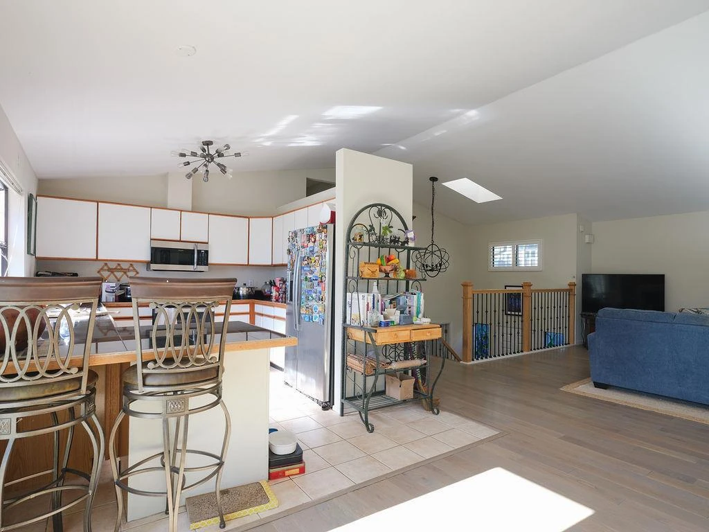 Spacious home with excellent natural light and separate in-law unit in a fantastic coastal location. The large open concept great room has vaulted ceilings, a wood burning fireplace, skylights and and deck off the common area. A distant ocean view can be observed from the primary bedroom suite with walk-in closet, sizable bathroom, and balcony, overlooking the rear garden. Two adjacent bedrooms and a hall bathroom complete upper split level. On the lower level, an in-law unit with a bedroom, bathroom, living room, kitchen, dining space and private deck is accessible through it's own entrance via the side yard. There's also a laundry room and entrance to the 3 car garage on the lower level. 0.7+/- miles to Surfers Beach and hiking trails, less then 1+/- miles from shops and restaurants. There will be no open open houses; shown by appointment only.