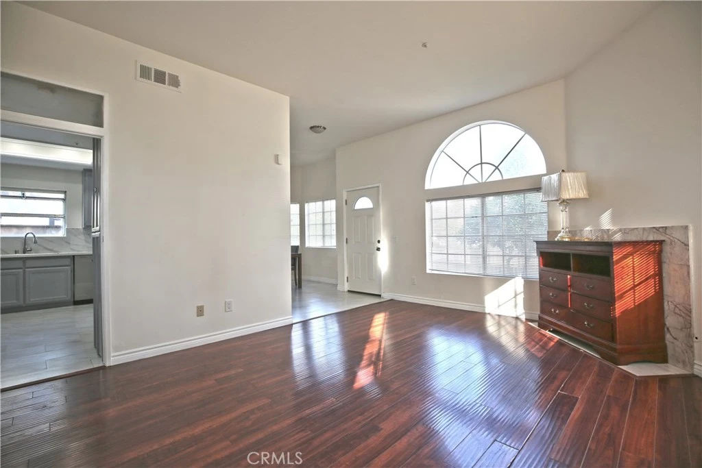 This rare and stunning two-story updated spacious PUD is located in a prime area of El Monte. It features 3 bedrooms and 2.5 bathrooms. The large enclosed front yard welcomes you into this bright and inviting home. The living room boasts a high ceiling, creating an open and airy atmosphere. The dining area is adjacent to the open kitchen and offers sliding door access to the backyard, perfect for indoor-outdoor living. The updated kitchen features newer cabinetry, quartz countertops with backsplash, and newer appliances. A powder room completes the first floor. The spacious primary bedroom offers a vaulted ceiling, his-and-her closets, and a private en-suite bathroom. Two generously sized bedrooms share a full bathroom in the hallway. Fresh interior paint and wood flooring further enhance the home’s appeal. Additional features include central air conditioning and heating, a two-car attached garage with direct access, and a laundry area located inside the garage. There is also an assigned parking space next to the garage. Conveniently located near restaurants, an elementary school, and the LA Badminton Club. Move-in ready!