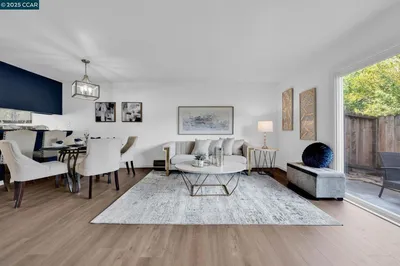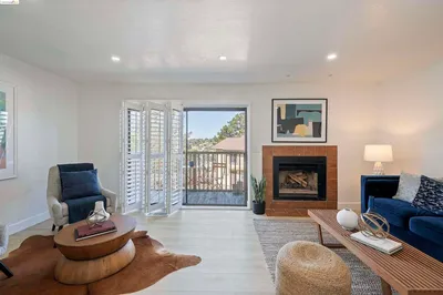 Welcome home to this charming 3-bedroom, 2-bathroom end-unit condo in the heart of El Sobrante, offering 1,423 square feet of comfortable and thoughtfully designed living space. With only one shared wall, this home provides added privacy and tranquility. The well-appointed kitchen features an electric cooktop, dishwasher, microwave, refrigerator, and quartz countertops. The dining area is enhanced by a wall-to-wall mirror and a garden window that fills the space with abundant natural light. Bamboo flooring flows throughout the home, while skylights further brighten the interior, creating a sleek, cohesive look that is both stylish and easy to maintain. The spacious primary suite is a true retreat, showcasing vaulted ceilings and a cozy fireplace that adds warmth and ambiance. The recently upgraded en-suite bathroom features double sinks, high-end West Elm fixtures, and stunning Italian porcelain shower tiles blending modern elegance with timeless design. Don't miss out on the opportunity to make this condo your own!