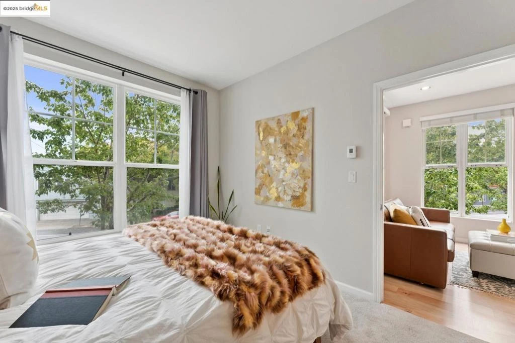 Experience comfortable urban living in the heart of Emeryville! This stunning, modernized corner unit is filled with natural light and offers a spacious, airy atmosphere. The highlight of this home is its open-concept kitchen, seamlessly integrated with the living and dining areas, featuring a stylish granite peninsula island that is perfect for entertaining friends or enjoying everyday moments. Large windows overlooking lush, mature trees create a tranquil, tree-top ambiance. Added conveniences include a stacked washer and dryer, as well as a remodeled walk-in closet with ample storage. The Andante Community offers excellent amenities, including a state-of-the-art gym, a relaxing hot tub, and secure parking. Within the complex, you can indulge in delicious Japanese cuisine or explore a variety of dining options like The Sunday or dining in the Temescal neighborhood. All your shopping needs are close by, and bus stops on the corner make transportation easy. With quick access to major freeways and BART stations, commuting to San Francisco is effortless. This well-rounded home includes blond Luxury Vinyl Plank Flooring and Hunter Douglas window coverings. Don’t miss this fantastic opportunity to live in a lively, well-connected neighborhood with top-tier amenities.