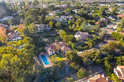Experience the best of coastal living west of I-5 in one of Leucadia’s most coveted neighborhoods—where panoramic ocean views, timeless Spanish-inspired design, and exceptional versatility come together on an expansive, private estate. The 5-bedroom, 4-bath main residence is thoughtfully designed with two fully self-contained levels, each featuring its own kitchen, living space, and laundry, allowing for complete separation or seamless integration as one expansive home. Additionally, a fully detached 2-bedroom, 1-bath ADU (casita) provides a private residence with its own yard, parking, and entrance. The upper level of the main home is the showpiece, where sweeping ocean views take center stage. The open-concept great room features a chef’s kitchen with a stunning Perla Venata quartzite island, hand-painted Tabarka tile, custom wood beams, solid alder doors, and engineered wire-brushed oak flooring throughout. Panoramic doors open to an expansive ocean-view deck with a gas fireplace creating the ultimate setting for sunset gatherings and relaxed coastal evenings. This level also includes a luxurious primary suite with a private ocean-view balcony, an additional bedroom, a beautifully appointed guest bath with a clawfoot tub and artisan tile, and a dedicated laundry/craft room. The lower level offers three bedrooms and two bathrooms (including an en-suite), a spacious living room with a wood-burning fireplace, and its own full kitchen and laundry providing a completely independent living space ideal for extended family or guests. The detached ADU (casita) is a true standout, offering a full kitchen, living room, separate laundry, private yard, dedicated parking, and storage completely independent from the main home. It's perfectly suited for rental income or long-term guests. Outdoor living is equally exceptional. The front courtyard welcomes you with a tranquil fountain, leading to a sleek saltwater pool and spa, outdoor bar, and gas fireplace creating a resort-style ambiance. The backyard is a lush retreat with mature fruit and citrus trees, raised garden beds, and a detached workshop or office. Additional highlights include gated entry and RV parking. All of this is just minutes from the beach, surf breaks, local coffee shops, and the vibrant yet laid-back lifestyle that defines Leucadia.