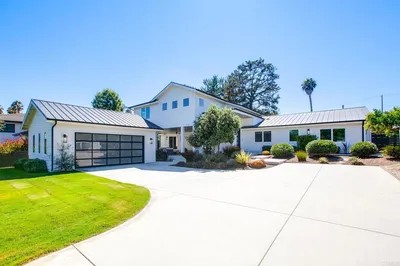 Tucked away on a serene .67-acre lot framed by mature trees, custom landscaping, and wide-open views, this just-completed renovation is truly one-of-a-kind. From the moment you arrive, you’ll feel transported—this property is equal parts country charm and resort-style escape, all within minutes of top schools, shopping, and the beach. The main home lives like a dream with 3 ensuite bedrooms all on the first level. A loft hang space (perfect as a playroom, lounge, or easily a 4th bedroom) with its own bathroom, as well as an office, are upstairs. The open-concept kitchen and great room are the heart of the home, featuring double islands, Calacatta Montreal quartzite counters, high-end paneled Thermador appliances, walk-in pantry with Pinky’s iron door, and a wood-burning fireplace under beamed ceilings. The primary suite is a sanctuary, complete with French doors leading to the backyard fire pit, a spacious walk-in closet, and a spa-like bathroom. Outside, the property shines with a resort-style pool featuring a waterslide, an additional plunge pool with a smaller slide, grass play areas, and multiple gathering spaces. The detached 3-car garage with stained-glass windows includes a full second level for storage or creative use, and the charming 1BR/1BA ADU with its own kitchen, entrance, and parking offers the perfect guest retreat, home office, or income opportunity. Renovated top-to-bottom with premium finishes, thoughtful design, and playful sophistication, this estate is equally suited for private living or unforgettable entertaining. Come experience the magic of Olivenhain living, where timeless charm meets modern luxury.
