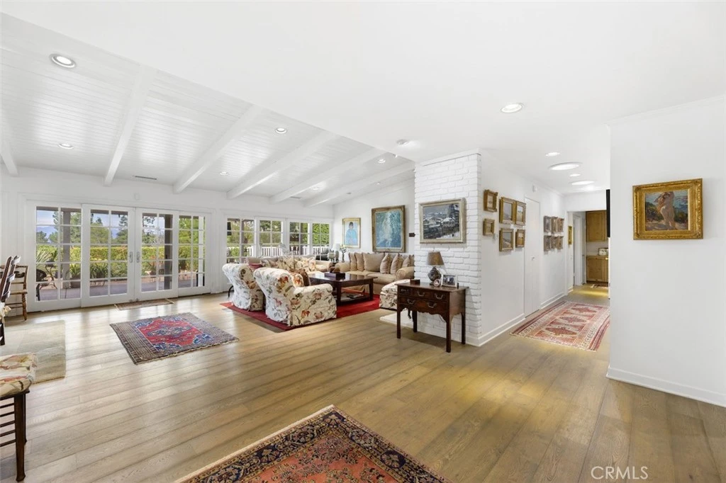 Located on a quiet cul-de-sac in the prestigious Encino Hills, this single-level 4-bedroom, 4-bathroom residence offers the quintessential Southern California lifestyle with stunning valley views. The open-concept "great room" serves as the heart of the home, featuring French Oak floors, vaulted beamed ceilings, a classic brick fireplace, and floor-to-ceiling glass sliders that create a seamless indoor-outdoor flow. The gourmet kitchen is a chef's dream, upgraded with Caesarstone quartz countertops, tumbled travertine flooring, and high-end stainless steel appliances including a separate full-sized refrigerator and freezer. Dual skylights and custom two-tone cabinetry maximize both the natural light and storage efficiency of the space. The home’s thoughtful layout features a primary suite retreat with a double-vanity bathroom, a walk-in closet, and direct French door access to the back patio. Two additional en-suite bedrooms occupy this wing, while a versatile fourth bedroom with a 3/4 bath sits adjacent to the kitchen—perfect for a home office or guest quarters. For those needing additional flex space, a large den provides the ideal footprint for a media room, home gym, or family lounge. Modern infrastructure is a focal point of the property, which includes fully paid-for solar panels and a two-car garage equipped with dual 220V EV charging outlets. Outside, the private entertainer’s backyard is designed for sustainability and relaxation, featuring drought-tolerant landscaping, an expansive covered patio, and a versatile swim spa for exercise or leisure. The property is situated within the highly-rated Lanai Road Elementary and Hesby Oaks Charter school districts and offers a strategic "South of the Boulevard" location for easy commuting to the Westside. This Encino Hills home perfectly balances mid-century charm with modern eco-friendly amenities, making it a rare find in the current market. Make this Encino Hills treasure your next home.