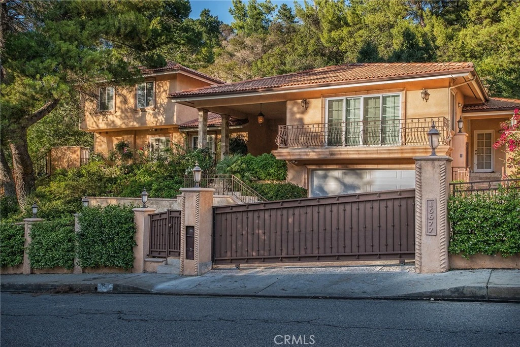 Welcome to this exquisite, gated Tuscan villa, gracefully poised in the picturesque hills of Encino. A showcase of timeless architecture and refined craftsmanship, this residence is defined by its grand open-concept living spaces, soaring vaulted ceilings, gleaming wood floors, and elegant stone finishes throughout. At the heart of the home lies a spectacular family-style chef’s kitchen, complete with an expansive center island, generous breakfast bar, casual dining area, and custom cabinetry. The kitchen is fully equipped with professional-grade Viking and Sub-Zero appliances, including dual ovens, built-in refrigeration, microwave, cooktop with griddle, and even an indoor BBQ — all seamlessly connecting to the fabulous family room, creating a culinary dream designed for both everyday living and grand entertaining. Additionally spread out at the central entertainer's bar with wine fridge, relax in the spacious formal living room with stunning stone fireplace or enjoy intimate dinners or extended family celebrations in the spacious formal dining room. Retreat to the opulent first-floor primary suite, a true sanctuary offering a romantic fireplace, private sitting area, direct access to the rear grounds, and a lavish spa-inspired bath. Enjoy a jetted soaking tub, dual-head shower, oversized vanity, sauna, and a custom walk-in closet fit for the most discerning tastes. Four additional bedrooms provide ample flexibility — two of which can serve as secondary primary suites, a theater, or fabulous game room! Step outside and decompress in the ultra-private rear oasis, where tranquility meets resort-style living. The serene patio overlooks the grassy play area and sparkling pool and spa with cascading waterfalls, surrounded by lush mature landscaping and peaceful hillside views — the perfect setting for relaxation or entertaining under the stars. Additional highlights include a gated motor court with stone-tiled drive, convenient Westside access and located within the Lanai School District. This remarkable estate blends warmth, sophistication, and functionality — a true Tuscan-inspired masterpiece you will surely not want to miss!