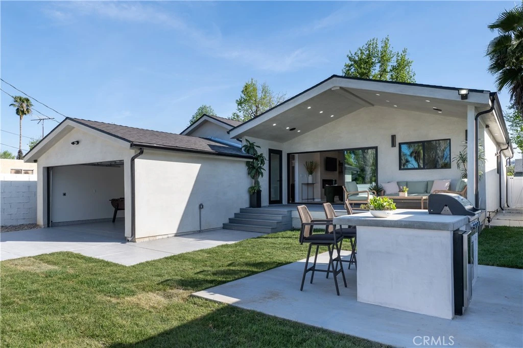 Located in the highly desirable Encino Park neighborhood, this fully reimagined residence has been thoughtfully rebuilt down to the studs and expanded by nearly 1,000 additional square feet, offering a true new construction–like experience. Now spanning approximately 2,000 square feet, the home features 4 bedrooms plus a dedicated office (optional 5th bedroom) and 3.5 bathrooms, providing flexibility for modern living. The interior is defined by elevated ceilings and a bright open-concept floor plan, creating a seamless flow between the living, dining, and kitchen areas. The kitchen is equipped with Thermador appliances, quartz countertops, and custom cabinetry, designed for both everyday functionality and entertaining. The primary suite offers a private retreat with a custom walk-in closet and a spa-style bathroom complete with a soaking tub and walk-in shower. Major system upgrades include new plumbing, electrical, HVAC, and a new roof, delivering the comfort and efficiency expected in a fully rebuilt home. Additional features include a built-in Sonos sound system in the main living areas, primary suite, and backyard, outdoor security cameras, and wireless internet boosters for enhanced connectivity throughout. The backyard is designed for indoor-outdoor living, featuring a covered Trex deck, built-in BBQ, and natural grass, creating a private and functional outdoor setting. Ficus trees enhance privacy in the front yard, while a finished two-car garage adds convenience. Situated in one of Encino’s most sought-after neighborhoods, this move-in ready home offers a rare combination of modern upgrades, expanded living space, and prime location.