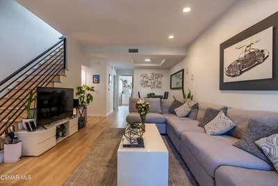 Embrace elegance and comfort with this beautifully maintained townhome in one of Encino’s most sought-after neighborhoods. Offering a beautiful 2 bedrooms, 2.5 bathrooms and 1,264SqFt of well-designed living space with an attached 2-car garage. Make your way into this beautiful front unit where a private patio and entryway greet you upon arrival. As you enter, you're greeted by high ceilings, recessed lighting and abundant natural light. The formal living room with a new cozy gas fireplace that sets the environment for relaxed evenings. Overlooking the living room is a dining area, perfect for shared meals, along with spacious kitchen with a breakfast counter, gas stovetop, dishwasher, microwave, and oven. Both bedrooms are en-suite retreats, each featuring walk-in showers for added comfort. The primary bedroom offers the ideal space for relaxation, while ceiling fans throughout the home provide a refreshing breeze. Outside, a front fenced porch and private patio offer inviting outdoor spaces. Mandatory earthquake retrofitting has been completed and new roof. Enjoy your summer at a sparking community pool. This beautiful unit is ideally located near the 101 Freeway, providing easy access to shopping area such as Trader Joe's, Ralphs, HomeGoods, Gelson's, Starbucks, and an array of other amenities, entertainment, and top-rated schools, all within the desirable Encino neighborhood.