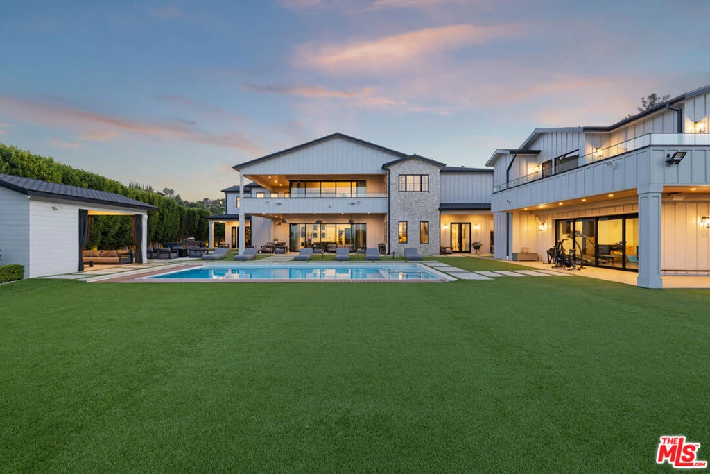 Welcome to this unparalleled modern farmhouse masterpiece, nestled south of the Boulevard in Encino, where grandeur meets charm behind private gates. This stunning, newly constructed estate sprawls across a spacious 1.35-acre lot, offering a secluded sanctuary on a quiet cul-de-sac. As you approach the grand estate, an extensive driveway leads you to an impressive 13,000 square feet of refined luxury. The large foyer greets guests with dramatic, soaring ceilings and seamlessly flows into the spacious living rooms. The massive gourmet kitchen features double islands and a cozy breakfast nook, a butler's pantry that enhances the dining experience, and opens up to breathtaking views of the meticulously landscaped grounds. The estate is a haven of entertainment and relaxation, comprising 8 exquisite bedrooms, 12 luxurious bathrooms, and 2 dedicated offices. The two-story guest house, along with a covered cabana with its own bathroom, offers ample space for guests, ensuring privacy and comfort. Indulge in the temperature-controlled wine cellar, state-of-the-art home theatre, and an outdoor kitchen perfect for alfresco dining. The property also features a private gym, a sports court for the active lifestyle, and a saltwater pool for tranquil leisure. The estate is complete with a 4-car garage, generator, and guard-house, ensuring utmost security and convenience. This modern farmhouse estate is a statement of luxury and sophistication, offering endless entertainment opportunities and a lifestyle of unparalleled comfort and elegance. Don't miss the chance to own this magnificent property, a true masterpiece of modern luxury and charm in the heart of Encino.