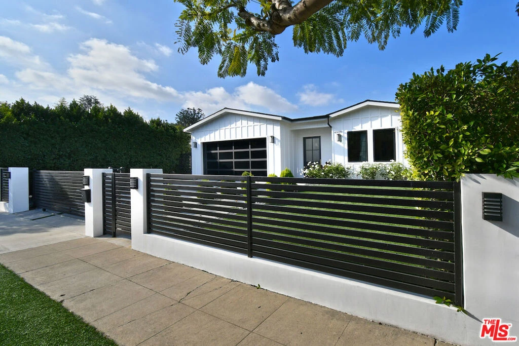 Welcome to this exceptional newer custom-built modern traditional home, designed with a focus on refined comfort and everyday ease. Located south of Ventura Blvd. behind a private gated entrance, this single-story residence features high ceilings, wide-plank hardwood floors, and an open layout that feels fresh and inviting from the moment you step into the entry foyer. The island kitchen anchors the home with custom cabinetry, a walk-in food pantry, and connection to the dining and living spaces. The formal dining area includes a built-in buffet and wine storage, offering both function and style. The adjoining living room provides a warm gathering space with built-in cabinetry, simple modern shelving, and a wood-detailed feature wall. A full wall of floor-to-ceiling sliding glass doors fills the room with natural light and opens to the backyard for easy indoor/outdoor living. All four bedrooms include their own en-suite bathrooms, and the large primary suite offers a generous retreat with a high beamed ceiling, walk-in closet, and a luxurious bath with a soaking tub and glass shower. The backyard is finished for relaxed enjoyment, complete with a heated pool and spa, patio area for dining, and a built-in BBQ island. Additional features include an indoor side-by-side laundry room and a finished two-car garage with EV charger and direct entry into the home. Thoughtful woodwork, custom hardware, and quality craftsmanship contribute to the clean, modern feel throughout. With its 2020 build/renovation, this home offers the comfort and appeal of new construction in a desirable Encino location close to shops, dining, and neighborhood amenities. Smart home technology and built-in sound.