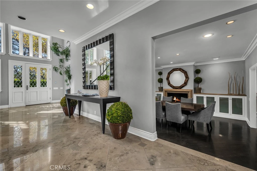 Welcome to this stunning south-of-the-boulevard gated estate, sitting on over one flat acre in the heart of Encino. As the dramatic gates open, you’re greeted by a 30-car cobblestone motor court that sets the tone for this 9,200 sq. ft. residence. To the south, you’ll find a lit sports court striped for pickleball — the perfect spot for daily matches and weekend fun. The front-facing four-car garage offers abundant storage space, attic access, and is prepped for EV charging. Step through the grand glass entry doors into an entertainer’s dream home, designed for large gatherings, holidays, and unforgettable parties. The main level offers a huge sunken dining room, a warm and cozy library, a formal living room, and a lively bar room — all opening to the backyard for a seamless indoor-outdoor experience. The chef’s kitchen boasts soaring ceilings, top-of-the-line stainless steel appliances, two sub-zero refrigerators and freezers paneled to match the kitchen, and a connected family room, perfect for homework, game nights, and casual hangouts. The laundry area leads to a home office, full bathroom, and guest quarters, ideal for long-term visitors or staff accommodations. The 1,600 sq. ft. primary suite is a retreat in itself, with high-pitched ceilings, a separate sitting room or gym/nursery, a spa-like bathroom with a sunken tub, and a spacious walk-in closet. Just outside the suite is a 1,300-bottle temperature-controlled wine room, accessible from both inside and outside the home. Upstairs, a dramatic staircase leads to three generous secondary bedrooms, each with an en-suite bath and walk-in closet. The backyard is an entertainer’s paradise, offering multiple gathering areas for morning coffee or evening cocktails, a covered BBQ and dining space, a sparkling pool, and a separate spa with a dramatic water feature — all surrounded by lush greenery. This property includes security cameras inside and out as well as security/motion lights all throughout the property. Also included is a Puroserve soft water system. If you’ve dreamt of living in a true Encino estate, this is your rare opportunity to own one of the neighborhood’s most impressive properties. Some photos have been AI generated to show potential remodel/updating and have been identified.