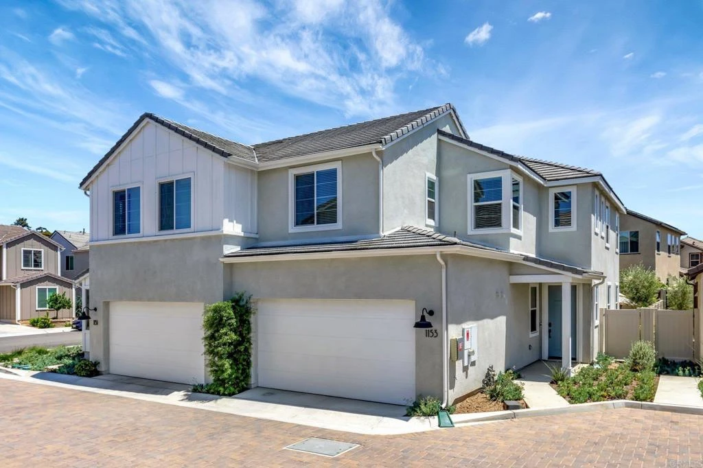 Pristine Retreat neighborhood home in newly developed Canopy Grove. Home features 4 bedrooms, 3 bathrooms, first level bedroom and full bathroom, upgraded flooring, quartz counters, solar, tankless water heater, and built-in barbeque. The kitchen features a quartz island w/ seating, quartz countertops w/ full tile backsplash, upgraded flooring, stainless steel appliances, pantry, pull out trash receptacles, and recessed lighting. The family room offers upgraded flooring, recessed lighting, a ceiling fan, and opens to the kitchen creating a large open living space. Adjacent to the kitchen, the breakfast area is enhanced w/ a chandelier and a glass door that leads to the backyard. The first level bedroom includes a ceiling fan and a walk in closet. The first level bathroom features upgraded flooring, a glass-enclosed walk-in shower, and recessed lights. The landing at top of stairs features a desk w/ seating area and lower storage cabinets, and recessed lights. The upstairs laundry room is equipped with upper storage cabinets, and an open shelf w/ a built-in hanging rack. The master bedroom is flooded w/ natural light from large windows and features recessed lighting. Its en-suite bathroom has dual sinks w/ upgraded backsplash, lower storage cabinets, a glass enclosed shower w/ dual seating area, and a walk-in closet w/ a mirrored door. The upstairs bedroom at the end of the hall features updated light fixtures on each side of the bed, closet w/ sliding doors, and a ceiling fan. The upstairs bathroom features dual sinks w/ backsplash, a large mirror, recessed lighting, and a shower/ tub combination. The fenced-in backyard showcases professionally designed drought-tolerant landscaping, concrete stepping stones leading to the side yard, cafe lights, and a built-in gas barbeque w/ counter space. The two-car garage includes ceiling racks and a tankless water heater. Welcome to Canopy Grove, a master-planned community in Escondido offering four unique neighborhoods that blend suburban charm with a vibrant community spirit. This development seamlessly integrates nature and outdoor living with cutting-edge home technologies, making it an ideal place to call home. Canopy Grove boasts an impressive array of amenities, including three beautiful parks, extensive walking paths, two enclosed pickleball courts, playgrounds, a half basketball court, a sand volleyball court, concrete ping pong tables, fresh drinking water stations, barbecues, dog parks, and picnic pavilions. The recreation center features a swimming pool, spa, fitness center, event lawn, and shower facilities. The barn-style recreation area serves as a lively hub for community activities and is available to the public. This space includes a gathering area with a kitchen, indoor and outdoor event spaces, a horseshoe area, restrooms, and an office, making it perfect for social events and community gatherings. Homes at Canopy Grove were originally designed with modern living in mind, featuring stainless steel appliances, quartz kitchen countertops, integrated home automation, and whole-home connectivity technology. Conveniently located just minutes from Interstate 15 and California State Highway 78, Canopy Grove offers easy access to all that Escondido has to offer.