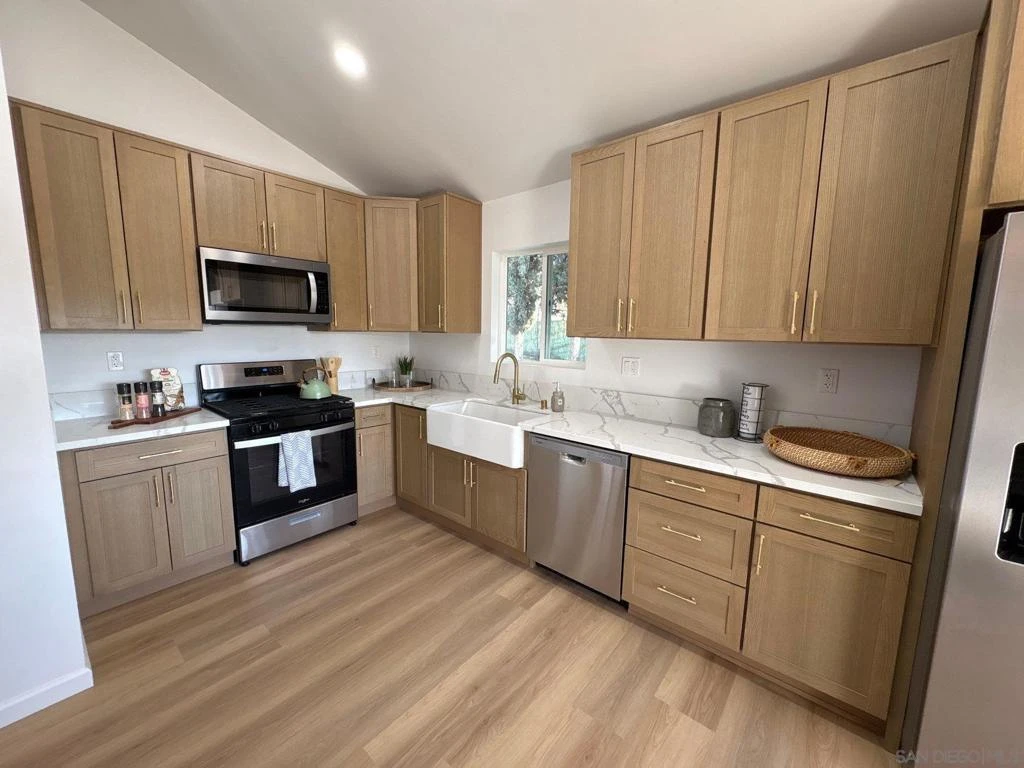 1172 North Ave, Escondido, CA 92026 is a standout single-level home that perfectly blends modern updates with desirable features and generous space.? This charming 3-bedroom, 2-bathroom residence sits on a spacious over ½? acre lot? and is fully gated, offering plenty of room for outdoor activities, gardening, or future expansions in the desirable North Broadway area. Home boasts of a highly sought-after single-level floor plan that's ideal for comfortable living and easy accessibility. Step outside to the large, covered patio offering an excellent space for year-round entertaining, outdoor dining, or relaxing while enjoying the private, expansive backyard.? Inside, the home has been fully renovated to contemporary standards, highlighted by a stunning new kitchen equipped with stainless steel appliances, custom cabinets, and tasteful accents that add elegance and functionality. Vaulted ceilings throughout create an open, airy feel, enhancing the sense of space in the living areas?. Stay cool and energy-efficient during those warm summer months with the new mini-split system for zoned, effective cooling. The primary suite is a true highlight, featuring a very modern en-suite bathroom that's been thoughtfully updated for a spa-like experience.? Priced at $849,500, this turnkey, renovated gem offers tremendous value in a prime Escondido location—convenient to shopping, schools, parks, and major routes—making it an attractive option for buyers seeking move-in-ready comfort on a large lot. This property is sure to appeal to those looking for modern upgrades without sacrifice. 1172 North Ave, Escondido, CA 92026 is a standout single-level home that perfectly blends modern updates with desirable features and generous space.? This charming 3-bedroom, 2-bathroom residence sits on a spacious over ½? acre lot? and is fully gated, offering plenty of room for outdoor activities, gardening, or future expansions in the desirable North Broadway area. Home boasts of a highly sought-after single-level floor plan that's ideal for comfortable living and easy accessibility. Step outside to the large, covered patio offering an excellent space for year-round entertaining, outdoor dining, or relaxing while enjoying the private, expansive backyard.? Inside, the home has been fully renovated to contemporary standards, highlighted by a stunning new kitchen equipped with stainless steel appliances, custom cabinets, and tasteful accents that add elegance and functionality. Vaulted ceilings throughout create an open, airy feel, enhancing the sense of space in the living areas?. Stay cool and energy-efficient during those warm summer months with the new mini-split system for zoned, effective cooling. The primary suite is a true highlight, featuring a very modern en-suite bathroom that's been thoughtfully updated for a spa-like experience.? Priced at $849,500, this turnkey, renovated gem offers tremendous value in a prime Escondido location—convenient to shopping, schools, parks, and major routes—making it an attractive option for buyers seeking move-in-ready comfort on a large lot. This property is sure to appeal to those looking for modern upgrades without sacrifice.