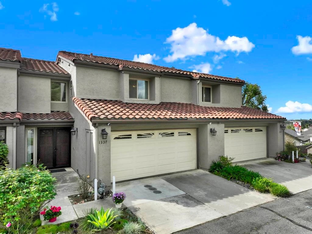 Welcome to 1337 Gary Lane in the desirable Country Club Terrace community of Escondido. This beautifully maintained 2-bedroom, 2.5-bath townhome offers a rare opportunity to own in this exclusive boutique enclave where ownership includes the land itself—an uncommon feature that enhances both value & privacy. Inside, the home showcases vaulted ceilings, abundant natural light, and peaceful neighborhood views, creating a bright & inviting atmosphere throughout. The light-filled open floor plan features warm wood flooring throughout the main living areas and a beautifully remodeled kitchen with modern finishes—perfect for both everyday living & entertaining. The spacious layout lives larger than expected, with exceptionally generous bedrooms offering ample storage & comfort. Two full bathrooms upstairs and a convenient powder room on the main level provide both functionality and ease for residents & guests. Step outside to a charming private backyard patio—an ideal space for relaxing or entertaining while enjoying lovely community views. The home is perfectly positioned within the community and also benefits from ample guest parking nearby. Set in a serene neighborhood environment close to parks, playgrounds, shopping, dining & everyday conveniences, this rarely available residence offers an exceptional opportunity to own a stylish, refined yet comfortable lifestyle in one of Escondido’s most sought-after townhome communities in Escondido.