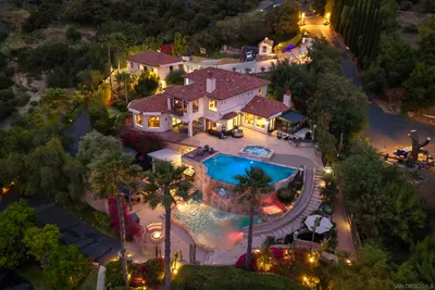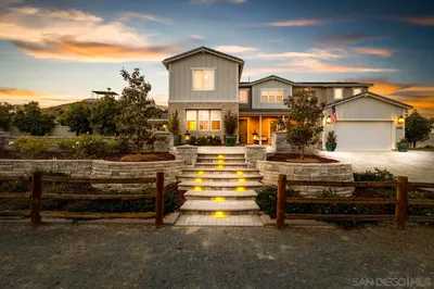 Welcome to luxury powered by 68 OWNED solar panels, including 3 Tesla power walls. Unparalleled elegance, sustainability and self-sufficiency are nestled in the hills of South Escondido delivering modern comfort while keeping operating costs remarkably low. With 5,368 sq.ft including an attached ADU, this palace is meticulously designed with living space ideal for family function & entertainment. A massive granite island highlights the open-concept kitchen which flows effortlessly into the upper-level living area where a 400+ sq. ft. covered terrace is the perfect spot to unwind with panoramic sunset views. The primary suite has striking vaulted ceilings with exposed beams, a spacious walk-in closet, and a luxurious spa-inspired bath ideal for relaxing. Additional bedrooms are thoughtfully placed on both levels. The lower level boasts a fully equipped ADU with private exterior access, a full kitchen, living room, an en-suite bath, laundry utilities, and it’s own outdoor area—ideal for generating income and/or multi-generational living. Exposure from the west side bathes the property in natural light & delivers breathtaking sunsets. The massive lot is highlighted by numerous fruit-bearing trees including Macadamia, Avocado, Pomegranate, Orange, Lemon, and more along with thriving grapevines—creating a private orchard retreat. Adding to it’s charm, the estate is home to six hens that produce over two dozen eggs weekly, enhancing the self-sustaining lifestyle. With a fully fenced & heated pool & spa, turf lawns, and a charming playhouse, this property is truly extraordinary!