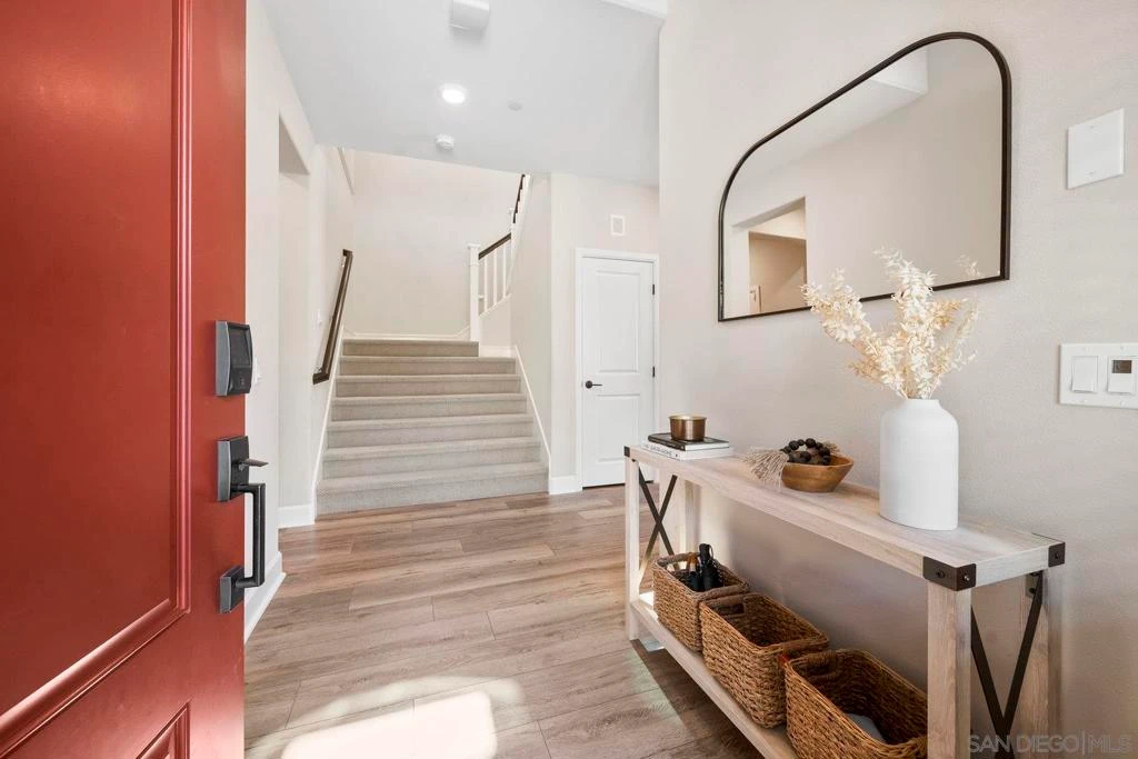 Discover the perfect blend of modern luxury and comfort in this stunning 4-bedroom, 3.5-bathroom home, built in 2020, nestled in the desirable Harmony Grove neighborhood. Spanning over 3,242 square feet, this spacious home offers a thoughtful floor plan designed for today’s lifestyle, including a highly sought-after downstairs bedroom ideal for guests or multi-generational living. Key Features: Spacious & Open Floor Plan: Featuring 4 generously-sized bedrooms and 3.5 bathrooms, this home provides plenty of space for your family’s needs, including an oversized upstairs loft and dedicated office space. Downstairs Bedroom: A convenient bedroom and full bathroom located on the first floor, perfect for guests, a home office, or multi-generational living. Chef’s Kitchen: A gourmet kitchen designed for entertaining with top-of-the-line stainless steel appliances, granite countertops, custom cabinetry, and a large center island with bar seating. The adjacent dining area is perfect for both casual meals and elegant gatherings. Elegant Living Spaces: An expansive family room with large windows that flood the home with natural light, offering a relaxing space for unwinding or hosting friends and family. Luxurious Master Suite: Located upstairs, the master suite is a private retreat featuring a spa-like bathroom with dual vanities, a soaking tub, a separate glass-enclosed shower, and an impressive walk-in closet. 3 Car Tandem Garage with EV Charger. Designer Finishes Throughout: Gorgeous hardwood floors, modern light fixtures, and stylish tile selections create an atmosphere of sophistication and comfort. Private Backyard: The backyard provides a peaceful oasis, perfect for outdoor living with room for BBQs, dining, or future pool plans. Enjoy the quiet and tranquility of your own space, all while being surrounded by the natural beauty of Harmony Grove. Energy-Efficient Features: Equipped with energy-efficient windows, a tankless water heater, and smart home technology to enhance both sustainability and comfort. Community Perks: The Harmony Grove neighborhood offers walking trails, parks, and a strong sense of community, all with easy access to local shops, dining, and top-rated schools. Built in 2020: This home is nearly brand-new, offering the latest in design, technology, and construction, ensuring a maintenance-free living experience for years to come. This home is an absolute gem for those looking for space, modern amenities, and a prime location. With a downstairs bedroom and all the upgraded features you’d expect in a home built just a few years ago, it's truly a must-see