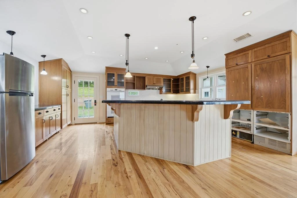 Incredible opportunity on approximately 6 acres with endless potential. The property offers room for cosmetic updates and creative improvements. The current home presents multiple ADU possibilities, including a potential junior ADU on the lower level with a separate entrance, as well as options for a detached ADU or a simple conversion on the main floor. The expansive kitchen offers an ideal opportunity to become the centerpiece of the home, complemented by a formal dining room, soaring vaulted ceilings in the dining and living areas, and a welcoming living room fireplace with a pellet stove. The primary suite is generously sized and features a walk-in closet. Located adjacent to a brand-new development, this property is rich with future possibilities and truly a must-see.